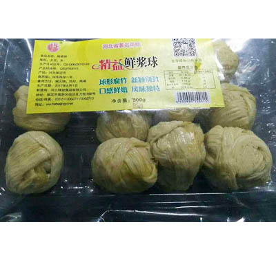 工艺独特,鲜豆浆自然凝结成皮,手工缠绕成球,速冻成型,冷冻储存,充分保留了鲜豆浆的天然清香,营养丰富,柔嫩爽滑。